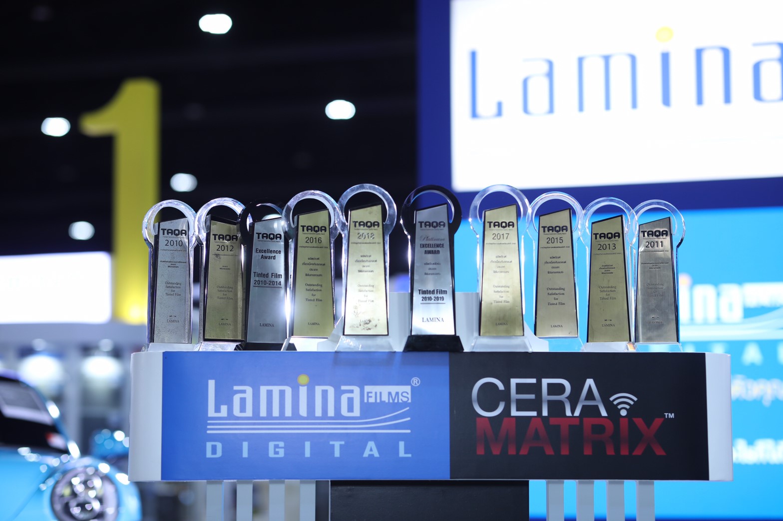 ฟิล์มกรองแสงรถยนต์ลามิน่าและฟิล์มกรองแสงกลุ่มพิเศษลูมาร์ ผลิตโดยซีพีฟิล์ม อิงค์ มาตรฐานไอเอสโอ 9001 ในเครือบริษัท อีสท์แมน เคมิคัล จากประเทศสหรัฐอเมริกา ได้กล่าวถึงการได้รับรางวัลต่อเนื่องเป็นปีที่ 10 ว่า