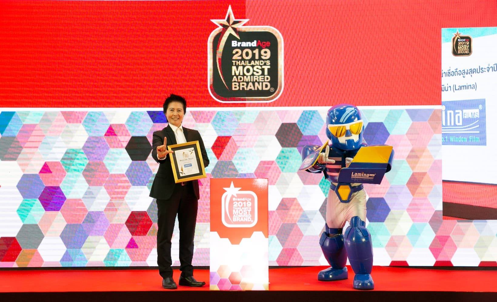 คุณจันทร์นภา สายสมร ประธานเจ้าหน้าที่บริหาร บจก.เทคโนเซล (เฟรย์) รับมอบรางวัล Thailand's Most Admired Brand 2019 หรือรางวัลตราสินค้าที่มีความน่าเชื่อถือสูงสุดในประเทศไทยต่อเนื่องเป็นปีที่ 5 และเป็นฟิล์มกรองแสงเพียงยี่ห้อเดียวที่ได้รับรางวัลนี้ จากผลสำรวจผู้ใช้งานจริงจัดโดยนิตยสารแบรนด์เอจ "ลามิน่า" เป็นผลิตภัณฑ์ที่ได้รับคะแนนโหวตสูงสุดเป็นอันดับ 1 ในหมวดฟิล์มติดรถยนต์ ใน 5 ด้าน คือ