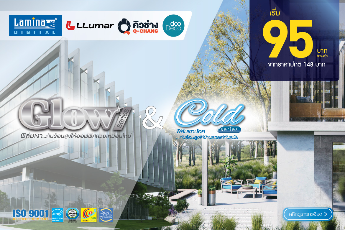 Glow Series ฟิล์มเงา...กันร้อนสูงให้ออฟฟิศสวยเหมือนใหม่ & Cold Series ฟิล์มเงาน้อย .กันร้อนสูงให้บ้านสวยเท่ทันสมัย เริ่มต้น 79.- จากราคาปกติ 135 .-